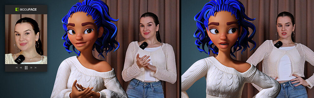 全身の動きから上体のジェスチャーまで、このシステムは詳細な指のトラッキングを伴う多彩なパフォーマンスに対応している。iCloneのAccuFACEおよびLIVE FACEと連携して、あらゆる会話クリップを生命感溢れるリアルな表現力を持った完全同期のボディ&フェイス・パフォーマンスへ変換する。