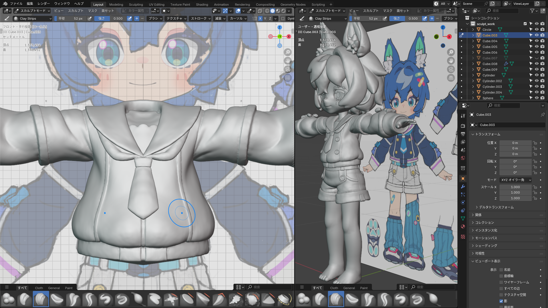 ・頭部・髪のモデリング:硬さやシルエットの弱さを克服し、スカルプトでイラスト特有の柔らかさと躍動感を出すプロセス
