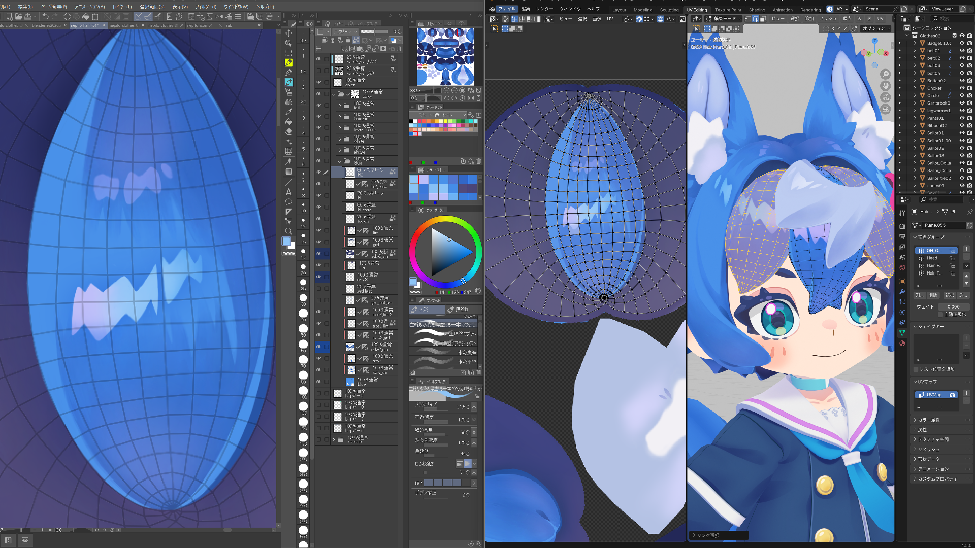 ・テクスチャの描き込み:ポリゴン数に頼らず、2Dツールでの描き込みで「イラストらしい密度」と立体感を引き出す手法とUV展開のコツ