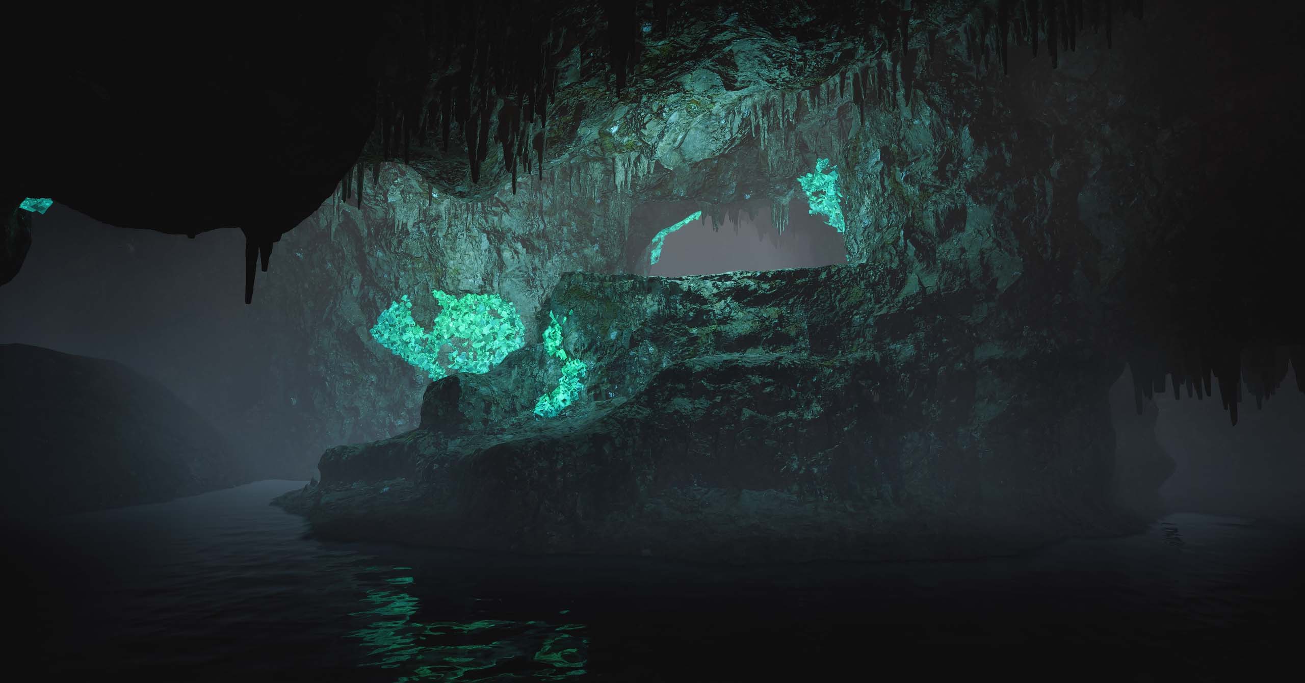 崖・洞窟・地形などの背景要素の制作を、プロシージャル生成を活用することで効率化しました。