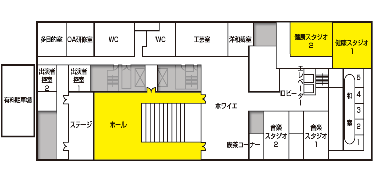 3F「大ホール」「健康スタジオ1」「健康スタジオ2」